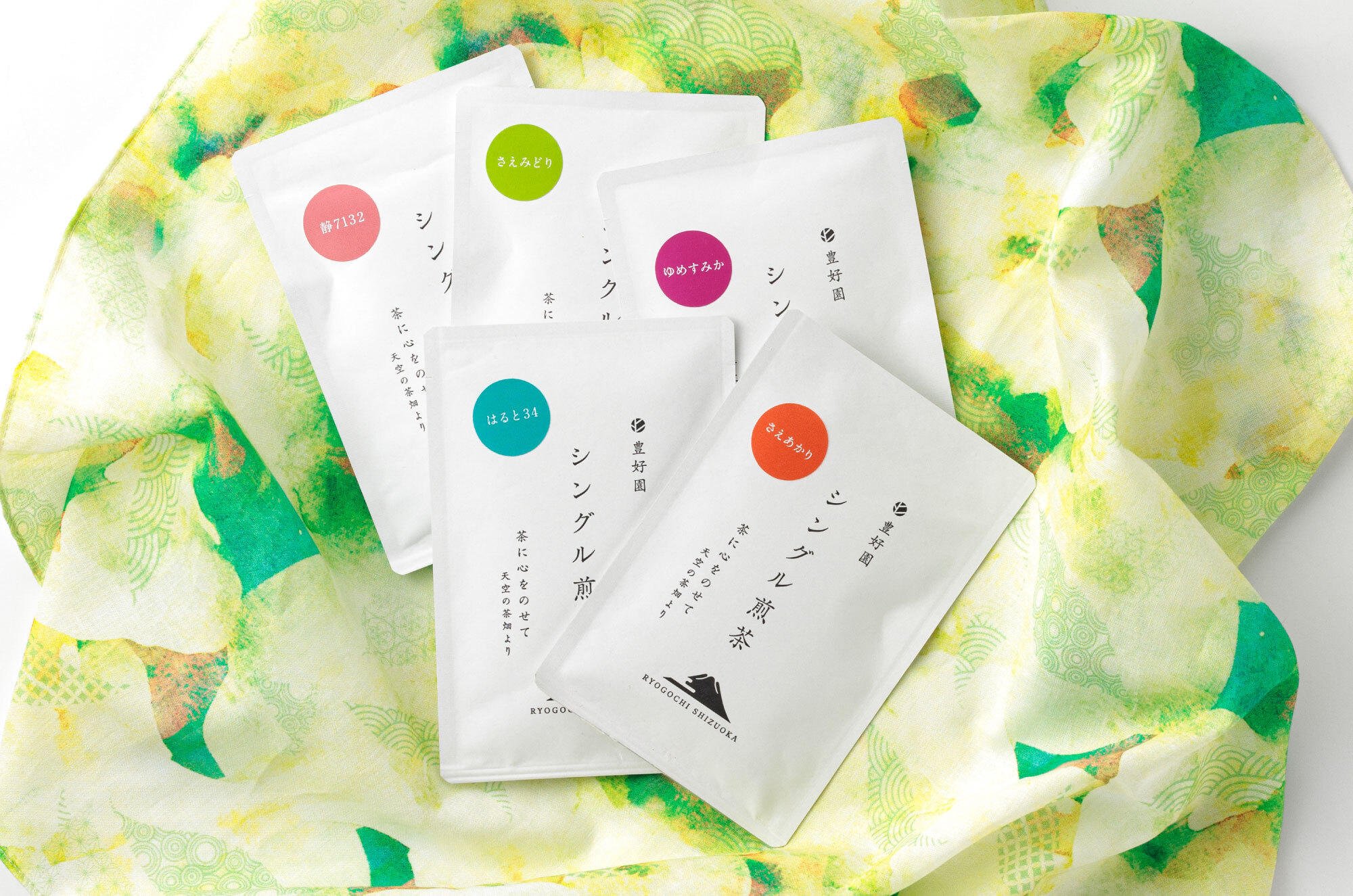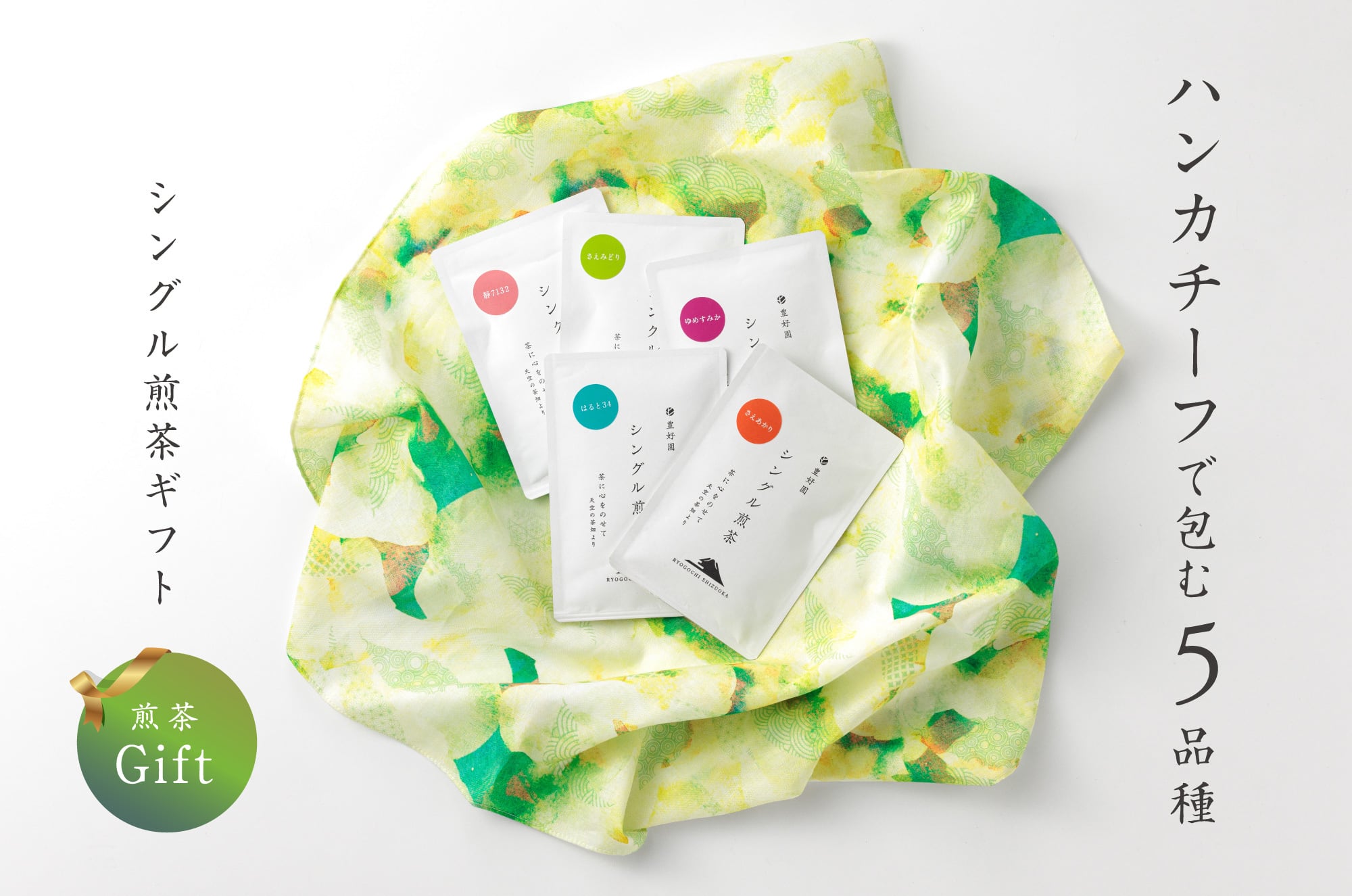 ギフト【ハンカチーフで包むシングル煎茶5品種】豊好園セレクト各30g