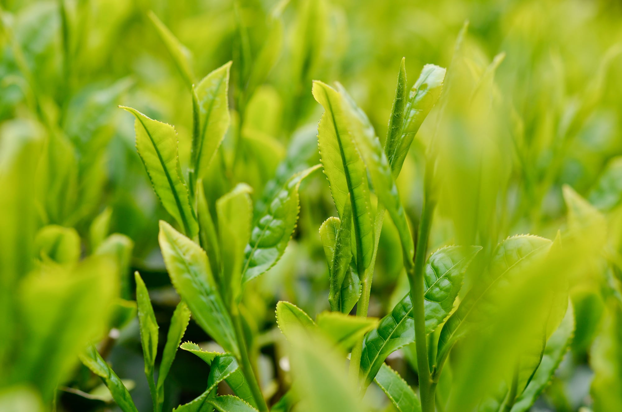 豊好園が育て製茶する30種を超える日本茶品種。煎茶・ほうじ茶・和紅茶それぞれに適した品種があり、それは茶の奥行きと幅である個性を存分に楽しむ事ができるのです。成木になるまで約5年、そこから1年かけ新芽が芽吹きます。