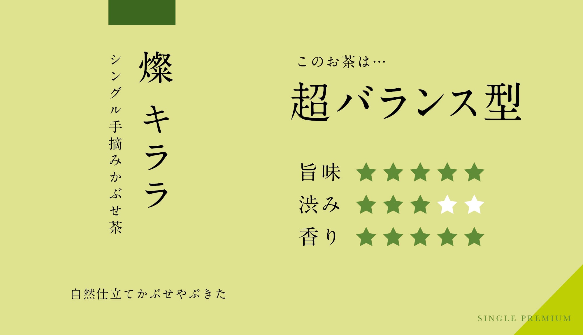 手摘みかぶせ茶「燦」は【超バランス型】。